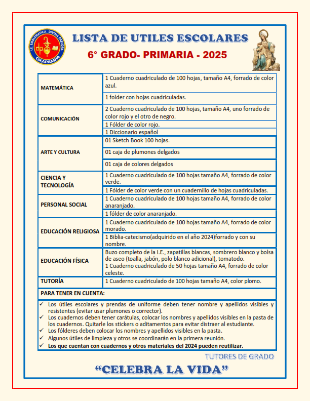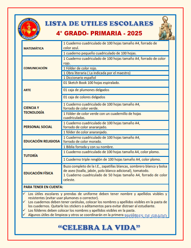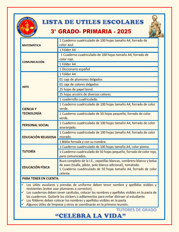 LISTA DE ÚTILES ESCOLARES SECUNDARIA 2025